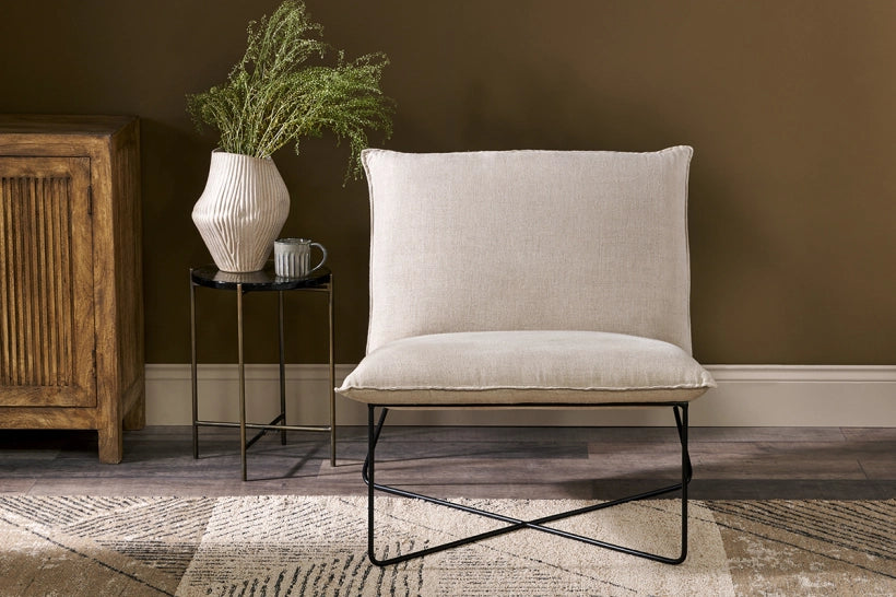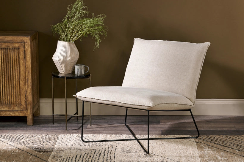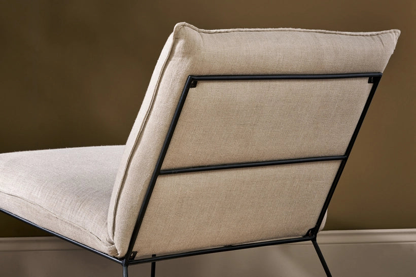 Generously proportioned, our Ashi oversized lounger is designed to offer comfort and versatility with its contemporary design. Perfectly formed for relaxed lounging, the firm base and back are upholstered in natural textured linen, while the simple iron frame creates an elegant cross bar for a fresh, classic silhouette.