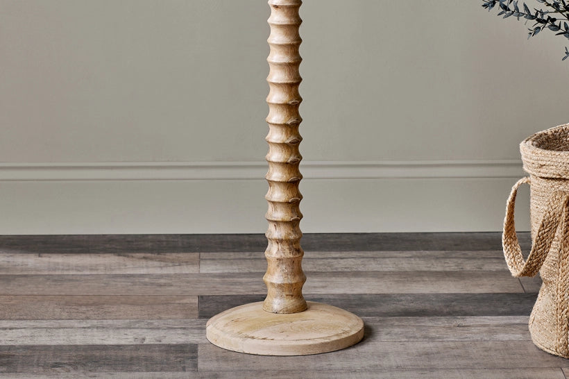 The hand carved spiral design of the elegant Ava floor lamp has been created from one continuous piece of solid mango wood; a material we love for its sustainable properties. It will bring instant interest to a dark corner of a room, makes a striking reading lamp and adds character to any interior scheme for a relaxed and welcoming atmosphere. Pair with a Jarde jute shade for a classic look.