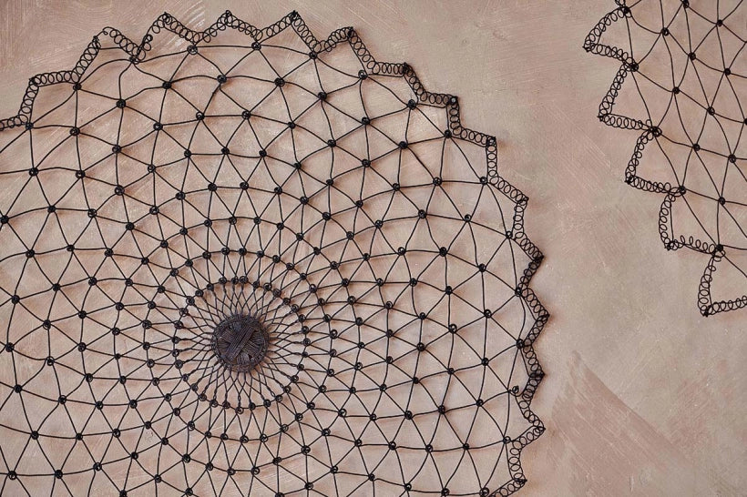 We love the striking and intricate design of our Dandi wire wall art. This detailed pattern is skilfully sculptured by hand in a web of pretty shapes and patterns bringing unique and stylish decoration to a wall or outside space.