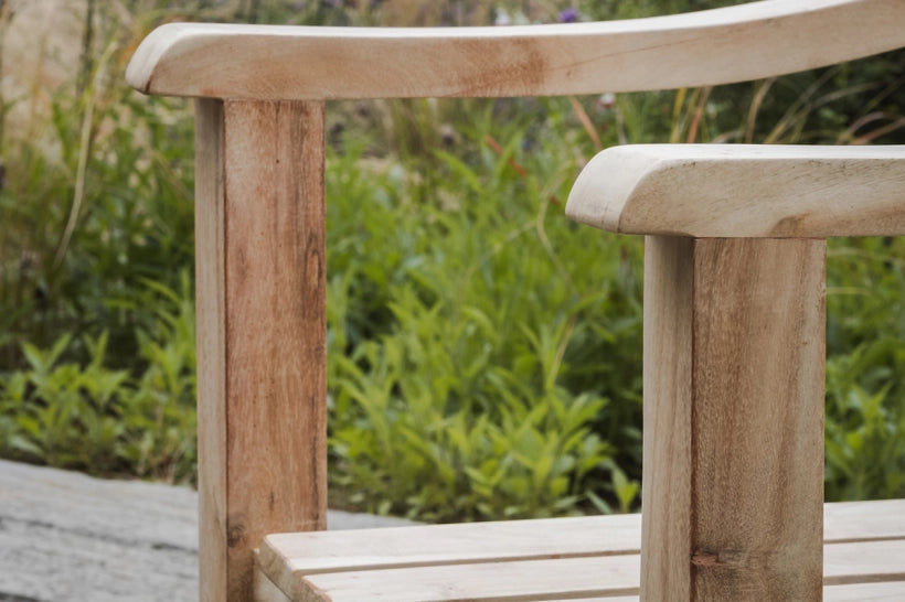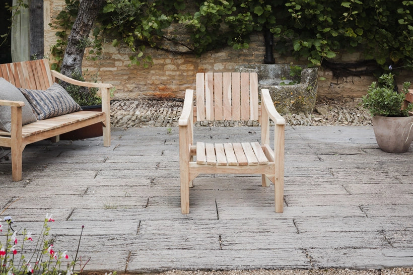 The Eve collection brings a touch of timeless and relaxed style to an outdoor living space. We love the functionality and practicality of the sofas slatted design as it allows the varied grain of the bleached acacia to shine through. Elegantly shaped arm rests add detail to this perfectly versatile piece.