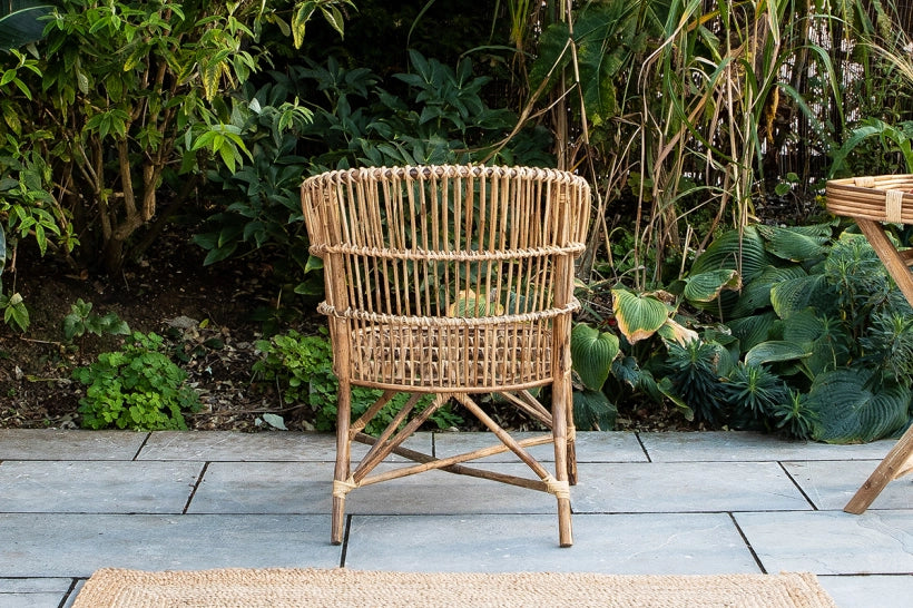 The Inugaya Armchair is the ultimate in natural style. This armchair has a timeless design, thanks to the way it’s been skilfully crafted using traditional techniques. The rattan material gives the chair a beautifully tactile and natural quality. The Nesari armchair has a deep seat and high curved back. The legs have an elegant outward stance. Though the armchair does not come with its own cushion, we suggestion styling it with our soft Yardo cushions for a pared-back look.