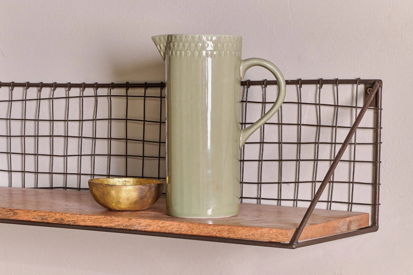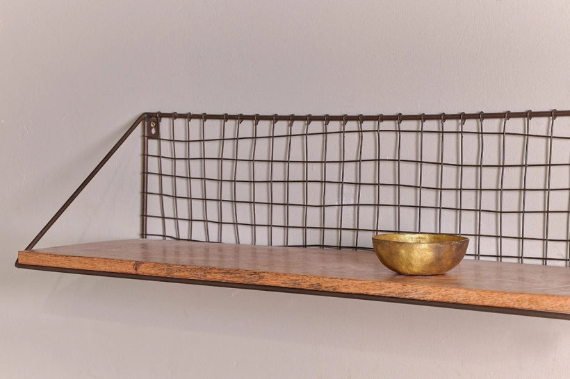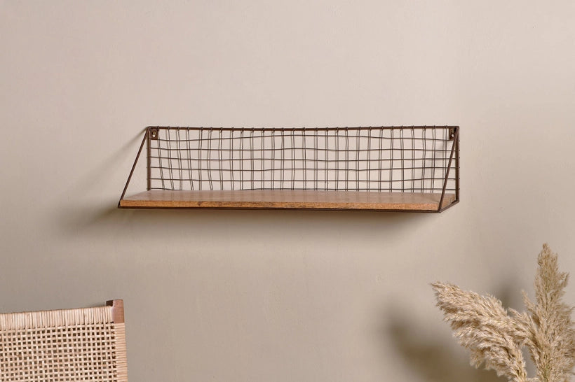 This useful Jai Su single shelf has a warm, rust-hued, wire back and solid mango wood base. The tones of the natural wood and rust will complement any interior, making the Jai Su a versatile shelf, whether for your home office, kitchen or bathroom. This practical shelf has two neat metal screw holes, allowing you to easily attach it a wall.