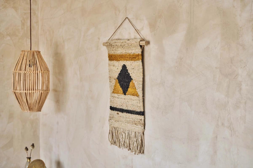 Bring texture and warmth to your wall space with natural qualities of hemp, woven into our eye-catching Lombu wall hangings. The pattern is woven on handlooms and hung on a sustainable mango wood frame.