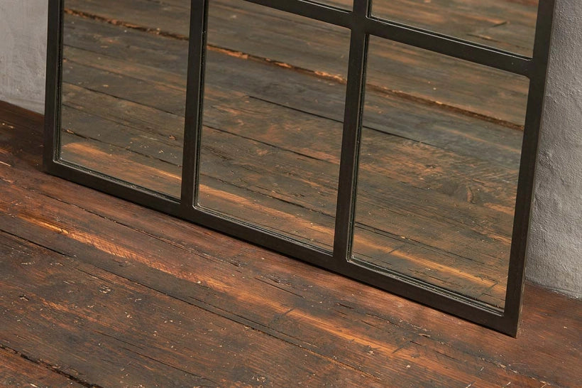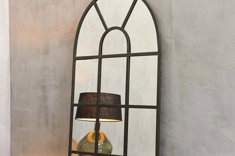 The striking architectural detail of the Myumi full length mirror makes it a glorious show piece, with the arched top and elegant windows adding to the stunning composotion of this skilfully crafted piece. The Myumi is made from iron and finished with an elegant brass finish, making it perfect as a focal point at the end of a hallway, to add interest to a living space, or simply to work well resting securely on a floor against a wall. Available in Black and Brass.