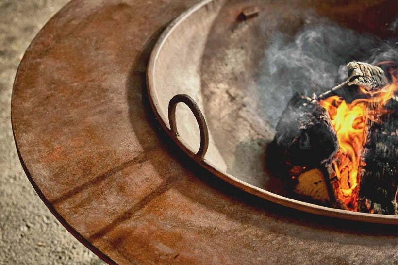 Make a focal point with our Oki Kami Fire Bowl. This statement piece is generously proportioned and crafted from solid iron. The traditional fire bowl shape is surrounded by a striking and practical table edge