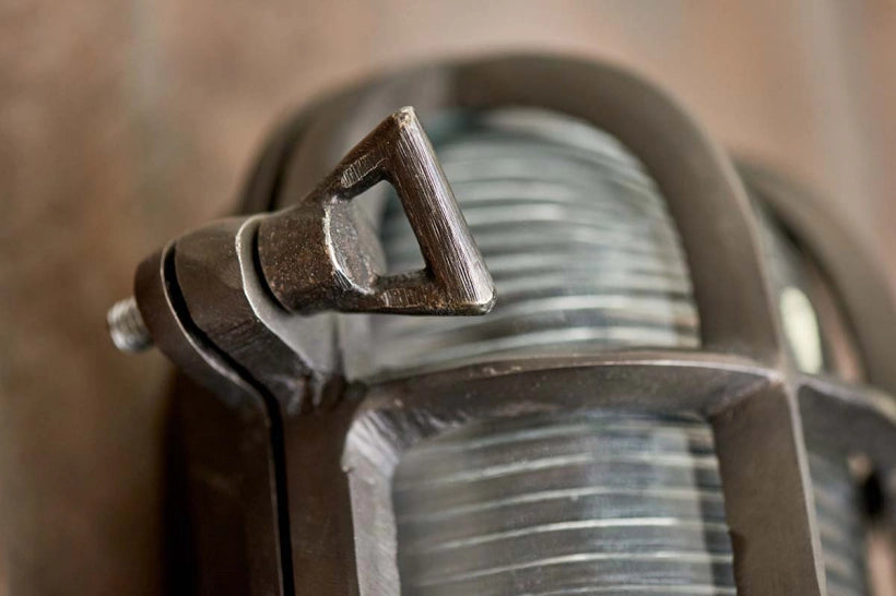 Our oval Okke bulkhead lights have brass cage front and surround. The face unscrews to allow space for a bulb. They have a subtle design that is perfect for lighting an entrance, pathway or terrace.