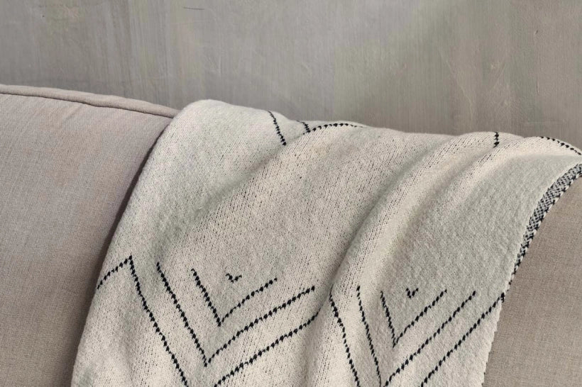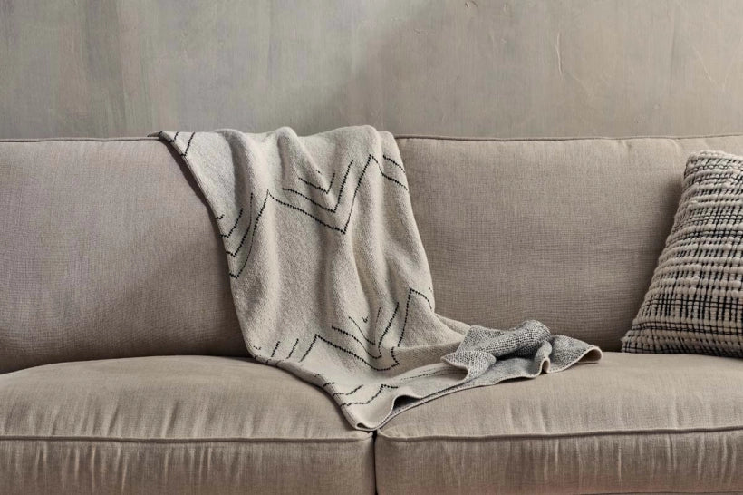 Soft and cosy, is the best way to describe our Oudi Throws. Generously proportioned these off-white cotton throws have a tactile weave, decorated with a simple peak monochrome design. Perfect to immerse yourself in on a cool evening or brighten up a sofa.