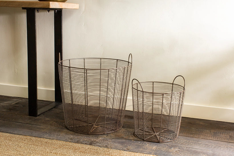 With its striking utilitarian aesthetic and aged brass wirework, our Qai storage basket makes it easy to keep your home free of clutter. The wire has been deftly and expertly shaped by hand into a product that is both hard-wearing and stylish. Two practical handles have been incorporated, making it easy to lift. The pared-back design means this basket is a versatile storage option, perfect for holding anything from fresh vegetables to logs for the fireplace. Available in two sizes.