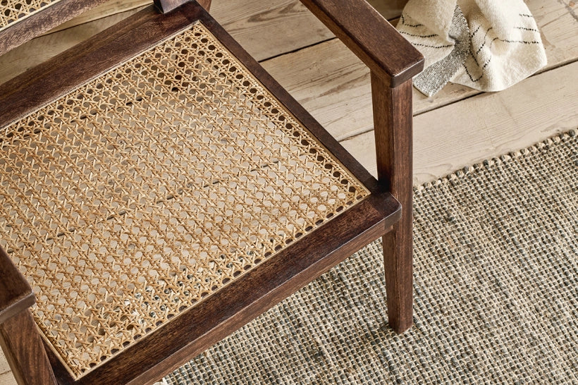 Our sturdy and well-designed Xun occasional chair makes a sophisticated statement. The cane seat and back have been expertly woven into a beautiful and intricate pattern. Dark stained mango wood adds elegance and perfectly complements the natural tones of the cane, creating an eye-catching contrast. Both cane and mango wood are environmentally friendly materials, making this chair a sustainable choice. With its generous proportions and classic silhouette, this chair brings a stylish and timeless quality to your home.