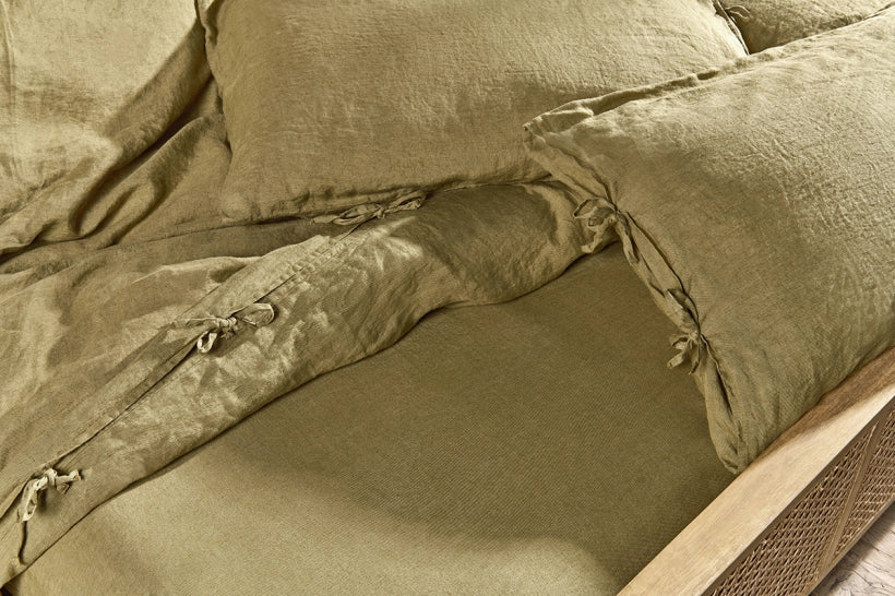 The rich hues of our Yaru duvet cover perfectly combines with the soft linen fabric to create a cosy and inviting aesthetic. Crafted in Portugal from 100% natural linen, this duvet cover has a luxurious and elegant feel. Linen is a climate-friendly option for bedding as it has minimal environmental impact. We’ve also used linen which is produced from certified European flax, a guarantee of quality and sustainability. The duvet cover is finished with delicate tie details, which are applied by hand.