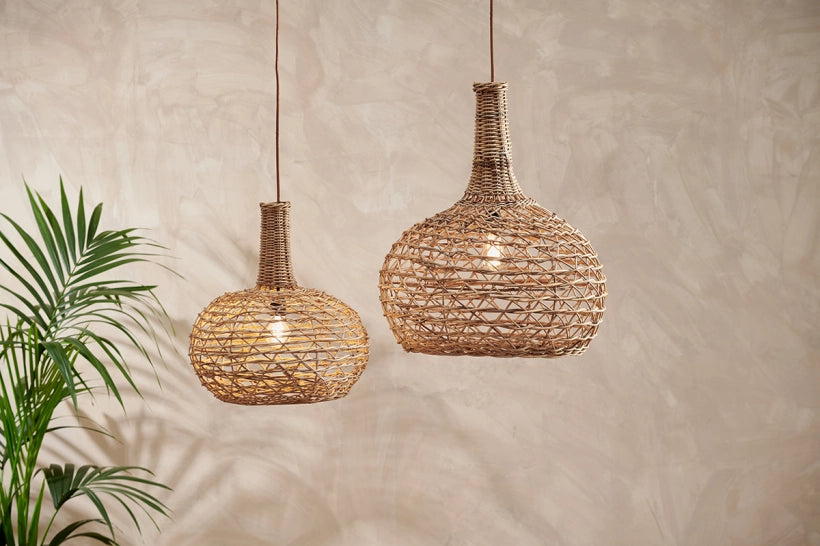 The striking Yinsu lampshades are skilfully handwoven from rattan in Indonesia. These ancient basket making skills are now used to create attractive pendant light shades.