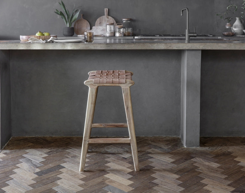 Yuksen Woven Leather Counter Stool - 70 x 40 x 40cm